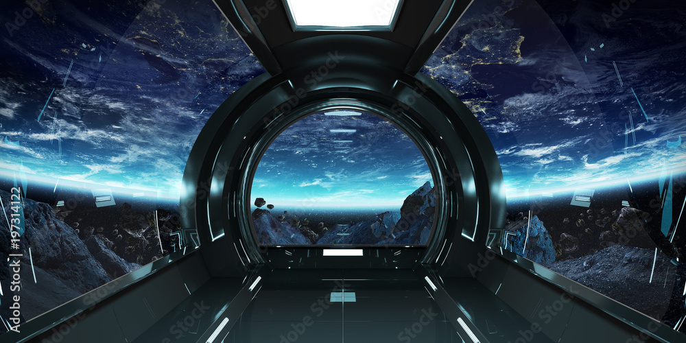 Wall mural spaceship interior with view on earth 3d rendering elements of this image furnished by nasa - Wall murals Wall mural spaceship interior with view on earth 3d rendering elements of this image furnished by nasa - Wall murals