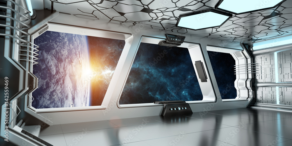Spaceship interior with view on the planet earth 3d rendering elements of this image furnished by naWall mural