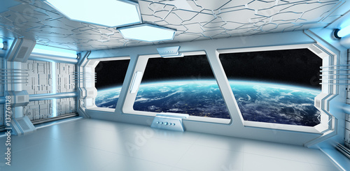Wall mural : Spaceship interior with view on the planet earth 3d rendering elements of this image furnished by na
