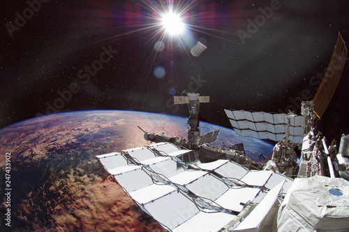 Wall mural spaceship on the orbit. elements of this image furnished by nasa. - Wall murals Wall mural spaceship on the orbit. elements of this image furnished by nasa. - Wall murals