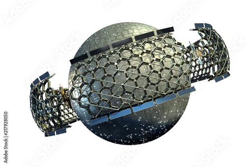 The watermark will not be included on Wall mural.: Spaceship with a planetary sphere surrounded by a geodesic structure