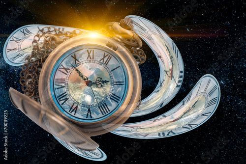 Wall mural : Spacetime universe scifi concept, twist clock time distortion warp into space bended curved for spac