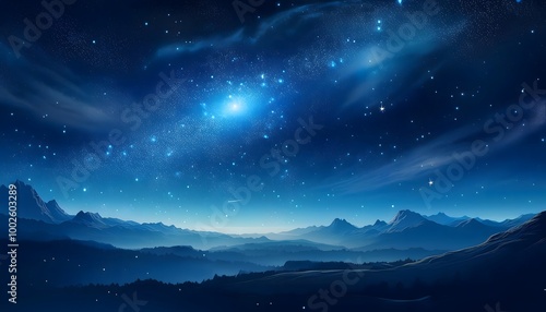 The watermark will not be included on Wall mural.: Sparkling blue galaxy star night on mountains illustration - cosmos nebula space universe landscape