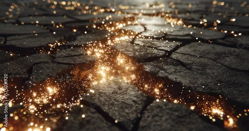 Wall mural : Sparkling cracks on dry surface creating a stunning visual effect