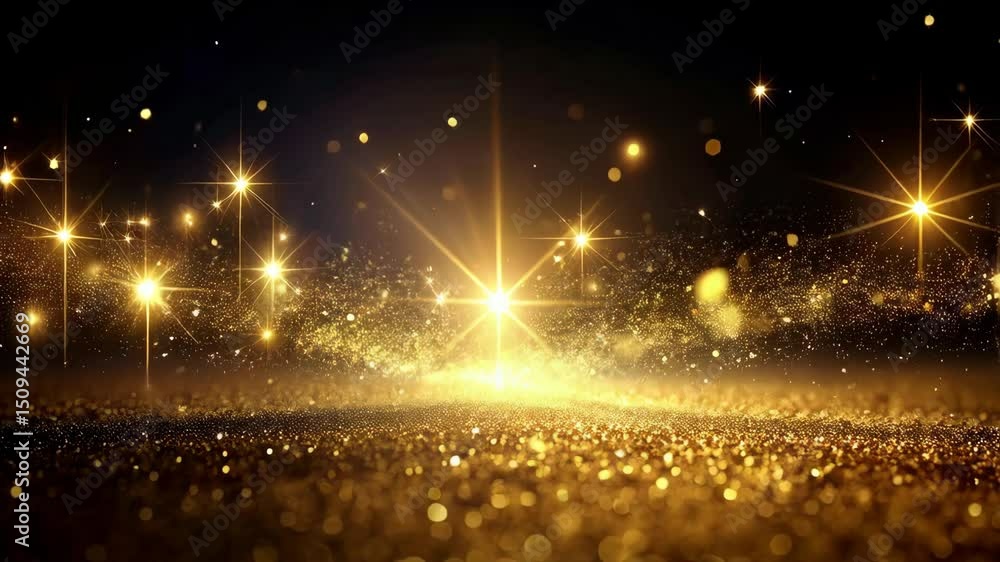 The watermark will not be included on Wall mural.: Sparkling golden dust floats in space, creating a dreamy festive backdrop with shimmering starlight
