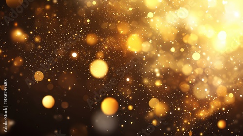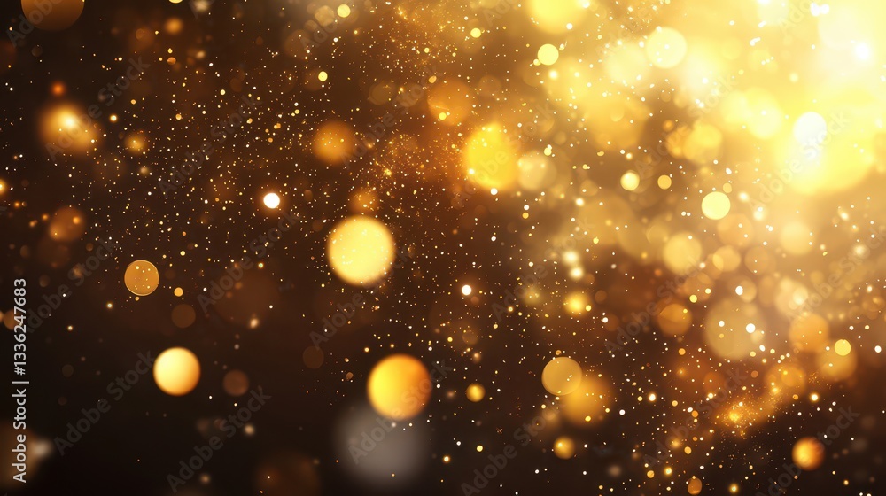 The watermark will not be included on Wall mural.: Sparkling golden universe: a captivating display of golden bokeh lights and particles, exuding warmt
