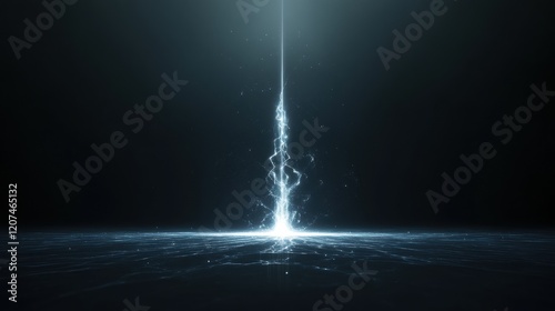 The watermark will not be included on Wall mural.: Sparkling light beam emanating from dark surface in digital space