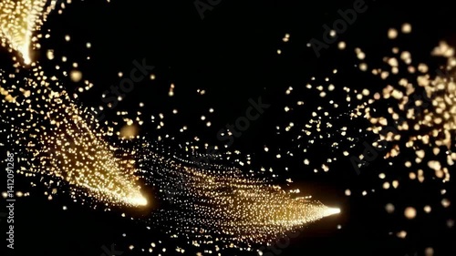 Wall mural : Sparkling particle burst transforming into golden stream in cosmic darkness