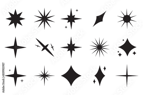 Wall mural : Sparkling stars icon set - retro futuristic sparkle icons collection - set of star shapes - cool shine