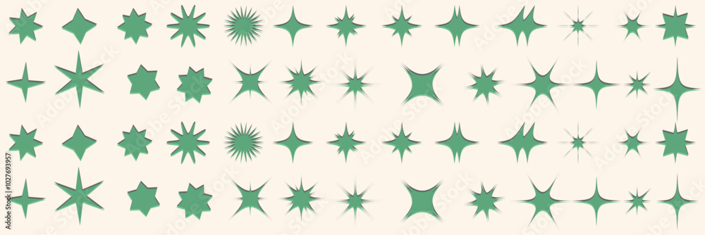 Wall mural : Sparkling stars icon set - retro futuristic sparkle icons collection - set of star shapes - cool shine