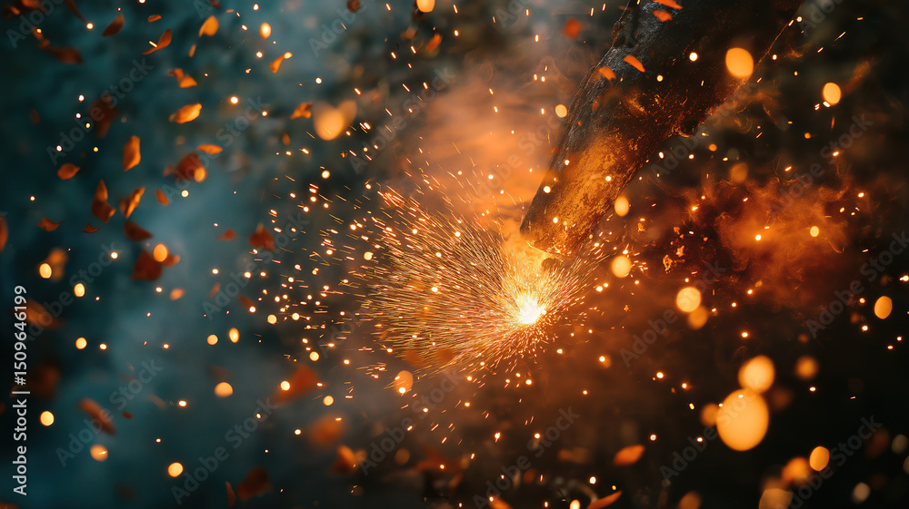 The watermark will not be included on Wall mural.: Sparks from welding process lighting workshop scene of skilled craftsmanship in action