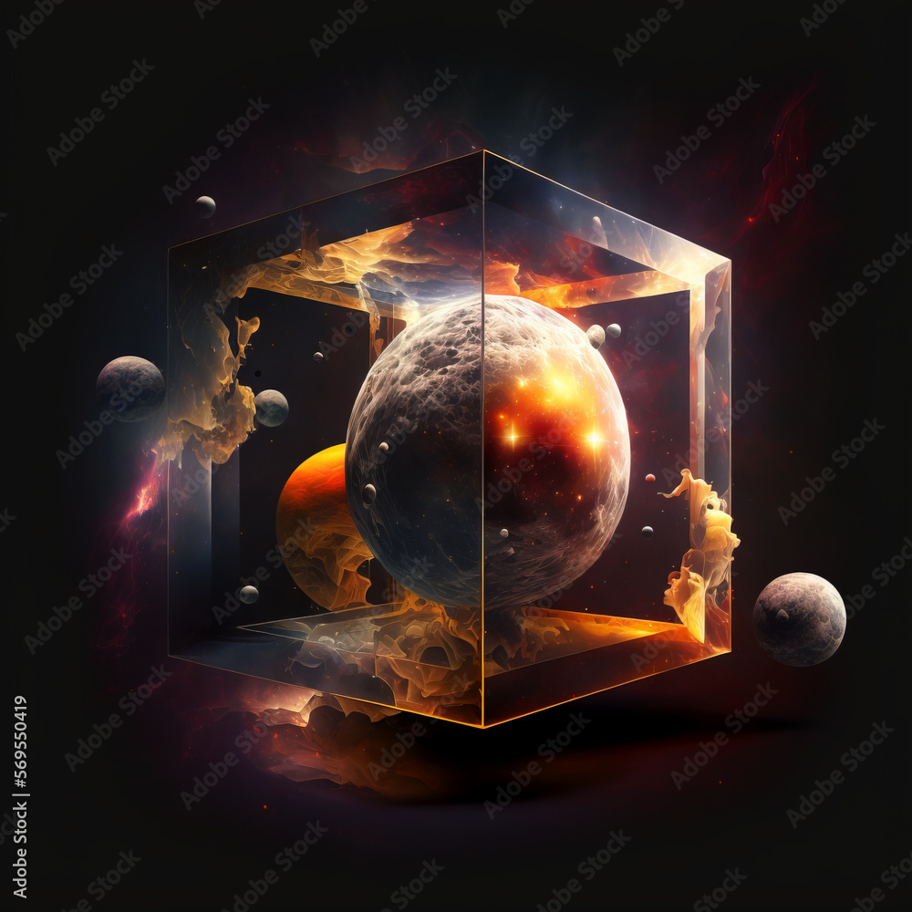 Spectacular show of the universe and its galaxies, stars and planets in a cube - generative aiWall mural