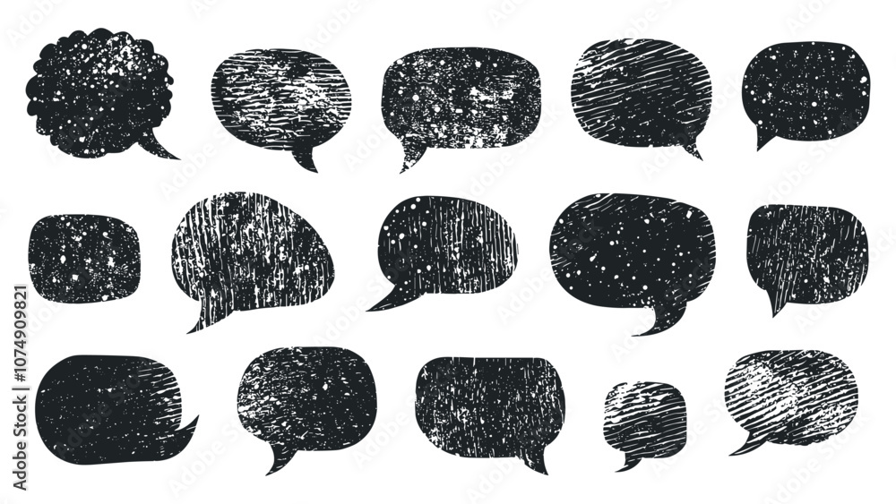 Speech bubbles hand-drawn linocut grunge texture vector set on white background with distressed desiWall mural