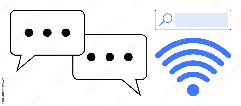 Wall mural : Speech bubbles representing messaging, a search bar for browsing, and a wireless signal icon for con