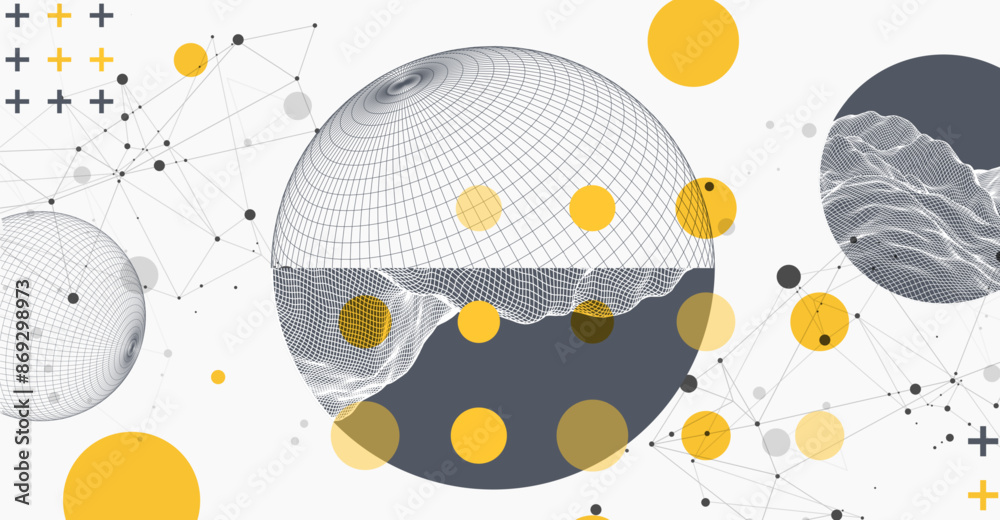Sphere theme with connected lines in technology style background - wireframe illustration - abstract 3Wall mural