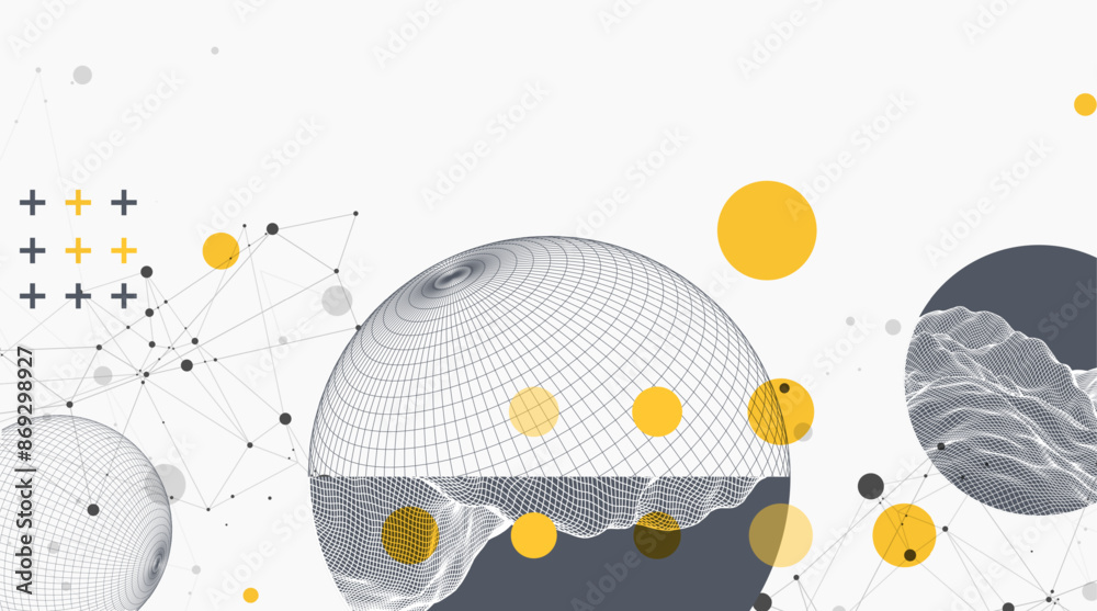 Sphere theme with connected lines in technology style background - wireframe illustration - abstract 3Wall mural