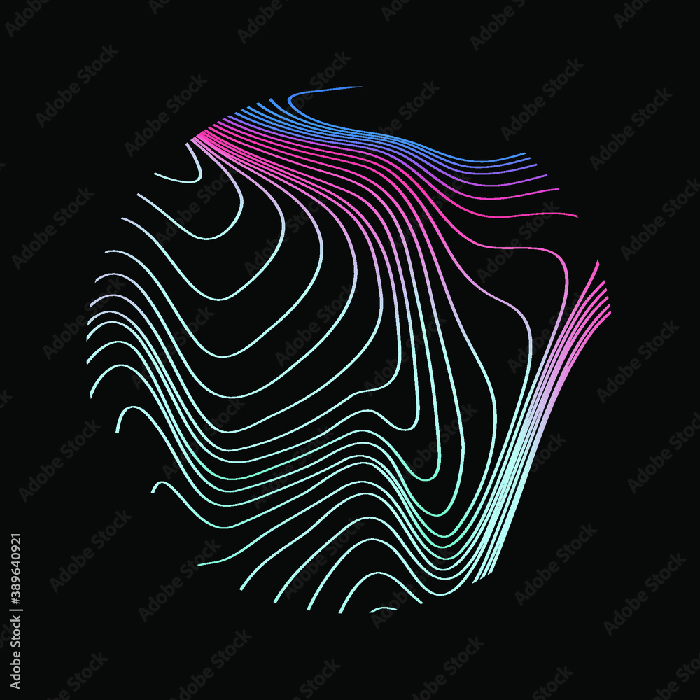 The watermark will not be included on Wall mural.: Sphere with glitchy and distorted surface of lines on dark background - abstract technology illustrat
