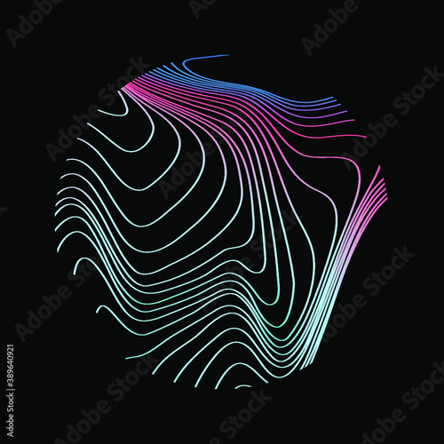 Wall mural : Sphere with glitchy and distorted surface of lines on dark background - abstract technology illustrat