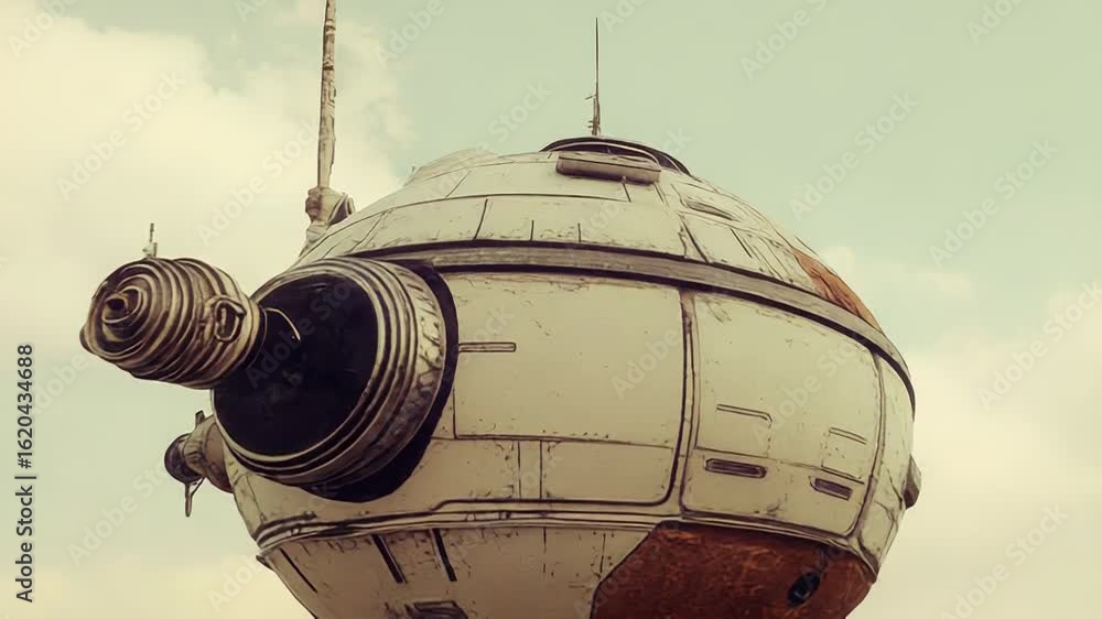 Wall mural spherical spaceship floating in cloudy sky, exploring the universe - Wall murals Wall mural spherical spaceship floating in cloudy sky, exploring the universe - Wall murals