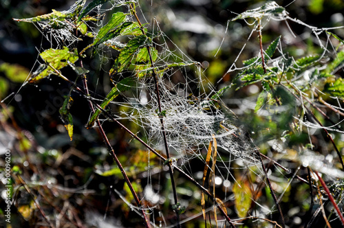 The watermark will not be included on Wall mural.: Spider web covered by dew
