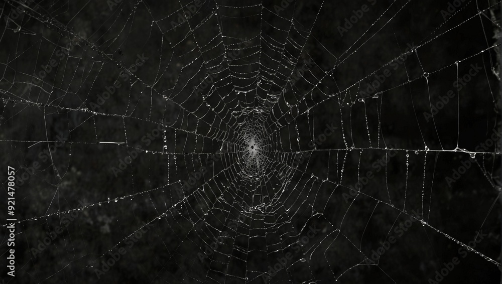 Wall mural spider web with dew drops