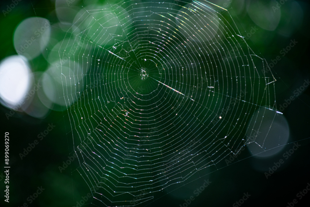 Wall mural spider web. macro. closeup nature. spider web in forest. spiderweb or spider net. arachnophobia. mot