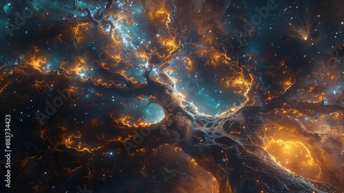 Wall mural spinal cord as a luminous spine-like tree with branches extending into a star-filled sky. - Wall murals Wall mural spinal cord as a luminous spine-like tree with branches extending into a star-filled sky. - Wall murals