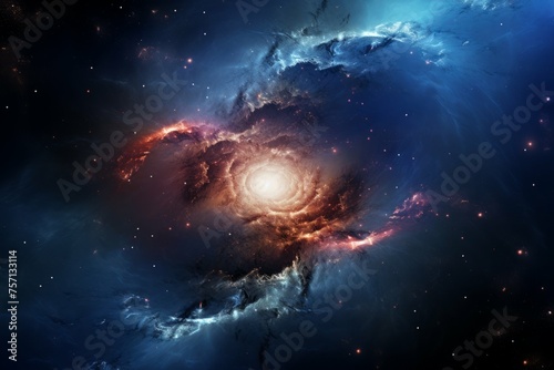 Wall mural spiral galaxy in a colorful nebula with star cluster
