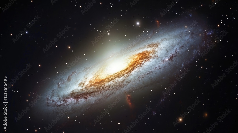The watermark will not be included on Wall mural.: Spiral galaxy with bright core and surrounding stars in deep space with dark background and copy spa