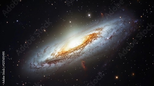 Wall mural : Spiral galaxy with bright core and surrounding stars in deep space with dark background and copy spa
