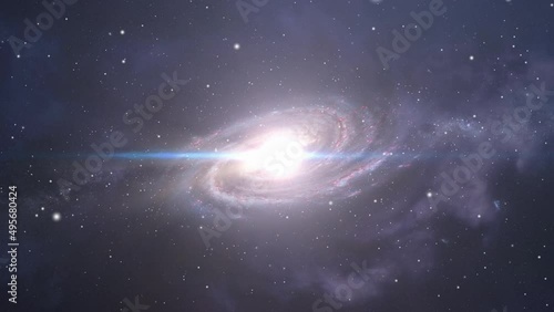Wall mural spiral galaxy with bright rays in the center in the universe 4k