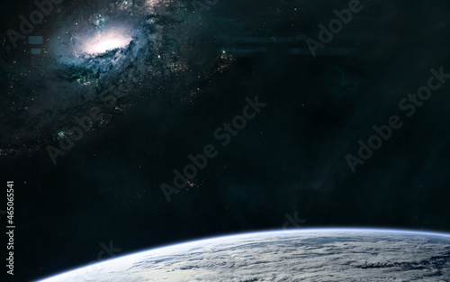 Wall mural spiral galaxy. deep space planet orbiting view. science fiction. elements of this image furnished by - Wall murals Wall mural spiral galaxy. deep space planet orbiting view. science fiction. elements of this image furnished by - Wall murals