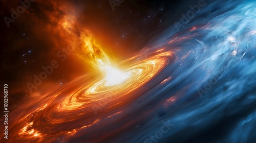 Spiral nebula in space with a luminous event horizon and a rotating accretion disk that attracts ligWall mural