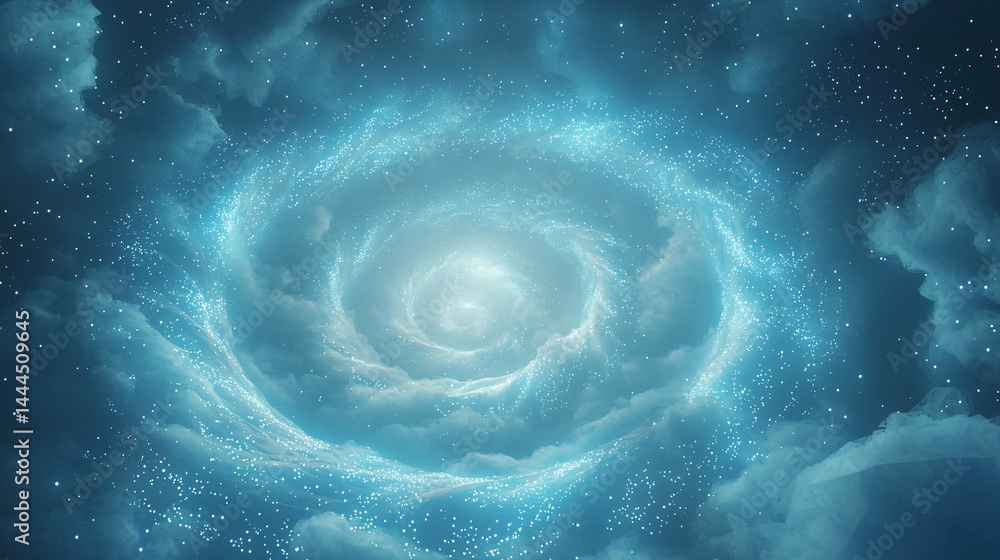 The watermark will not be included on Wall mural.: Spiraling celestial object gracefully floating in the sky surrounded by an expanse of cosmic wonder