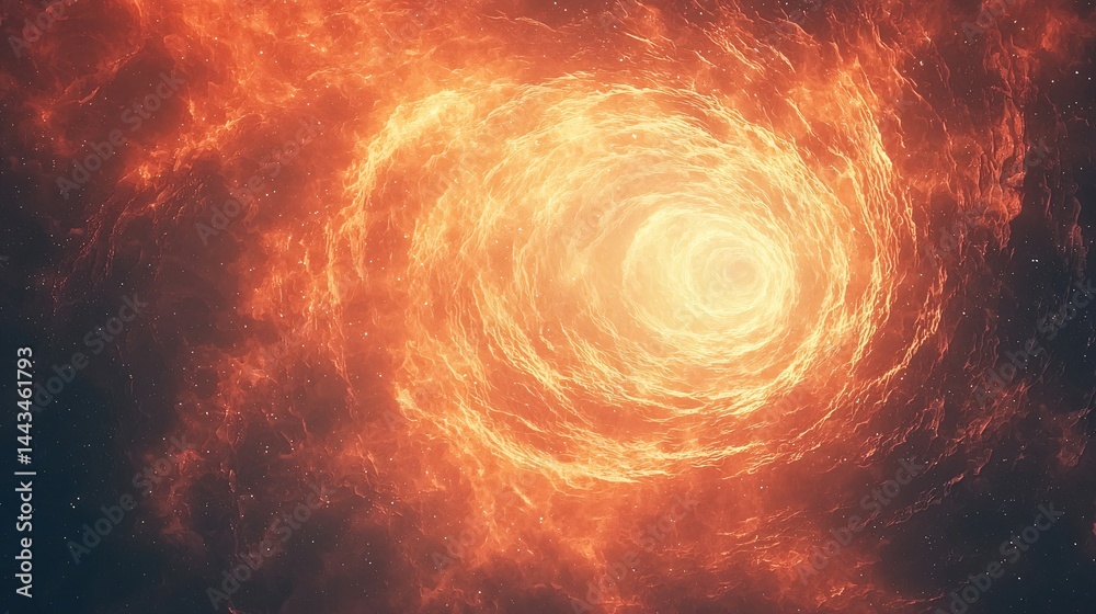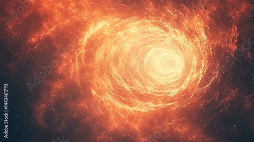 The watermark will not be included on Wall mural.: Spiraling orange and red cosmic object against a dark universe background creating a striking and vi