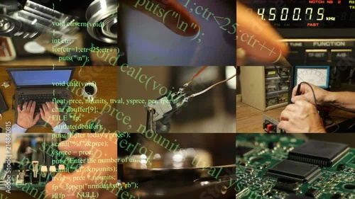 Wall mural split screen technology montage with computer code - Wall murals Wall mural split screen technology montage with computer code - Wall murals