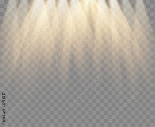 Wall mural spotlight isolated on transparent background. vector gold rays and beams. vector warm light