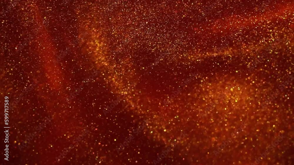 Wall mural : Spray of gold particles in red fluid - vortex of gold dust particles abstract exploding motion in red
