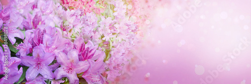 Wall mural : Spring abstract diffuse background with pink sky and branches of blooming flowers