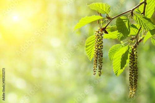 Wall mural spring background with branch with catkins of alder - Wall murals Wall mural spring background with branch with catkins of alder - Wall murals