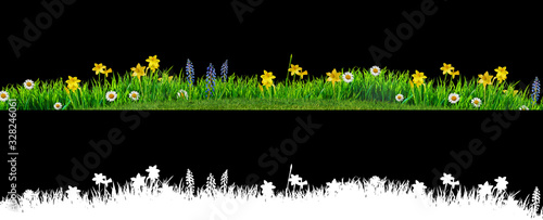 Wall mural spring grass and daisy wildflowers isolated with clipping path and alpha channel