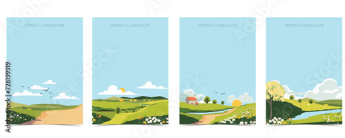 Wall mural spring landscape background with mountain and tree editable vector illustration for postcard,a4 vert