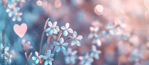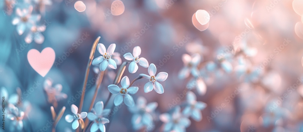Wall mural springtime snowdrop flowers in soft pastel tones with heart bokeh background, creating a dreamy and  - Wall murals Wall mural springtime snowdrop flowers in soft pastel tones with heart bokeh background, creating a dreamy and - Wall murals
