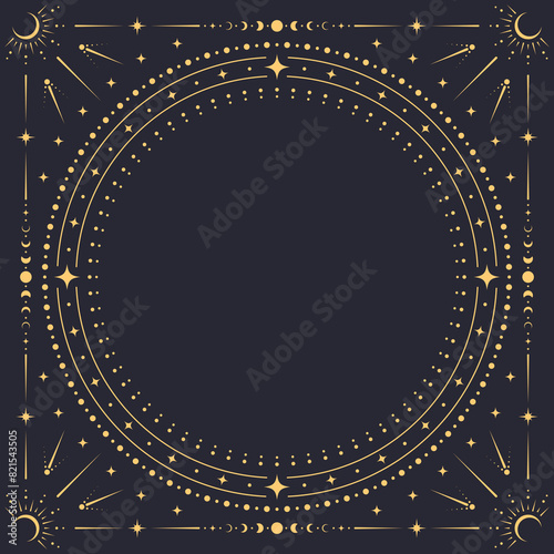 Wall mural square celestial frame. vector ornate background with concentric golden circle border adorned with s