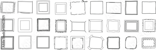 The watermark will not be included on Wall mural.: Square frames line art collection - this set of hand drawn minimalist frames showcases various design