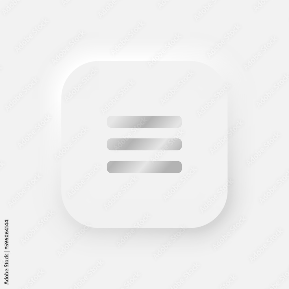 The watermark will not be included on Wall mural.: Square menu button on a white background - user interface elements in the style of neumorphism, ux, u