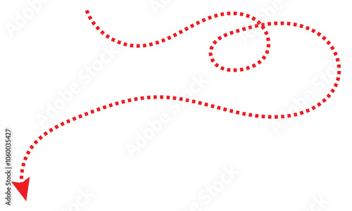 The watermark will not be included on Wall mural.: Squiggle line dashed arrow - dash curved vector editable stroke arrow - isolated on white background -