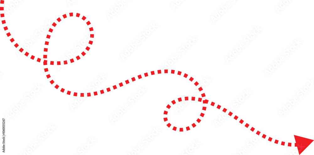 The watermark will not be included on Wall mural.: Squiggle line dashed arrow - dash curved vector editable stroke arrow - isolated on white background -
