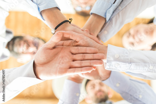 The watermark will not be included on Wall mural.: Stack of hands - unity and teamwork concept -