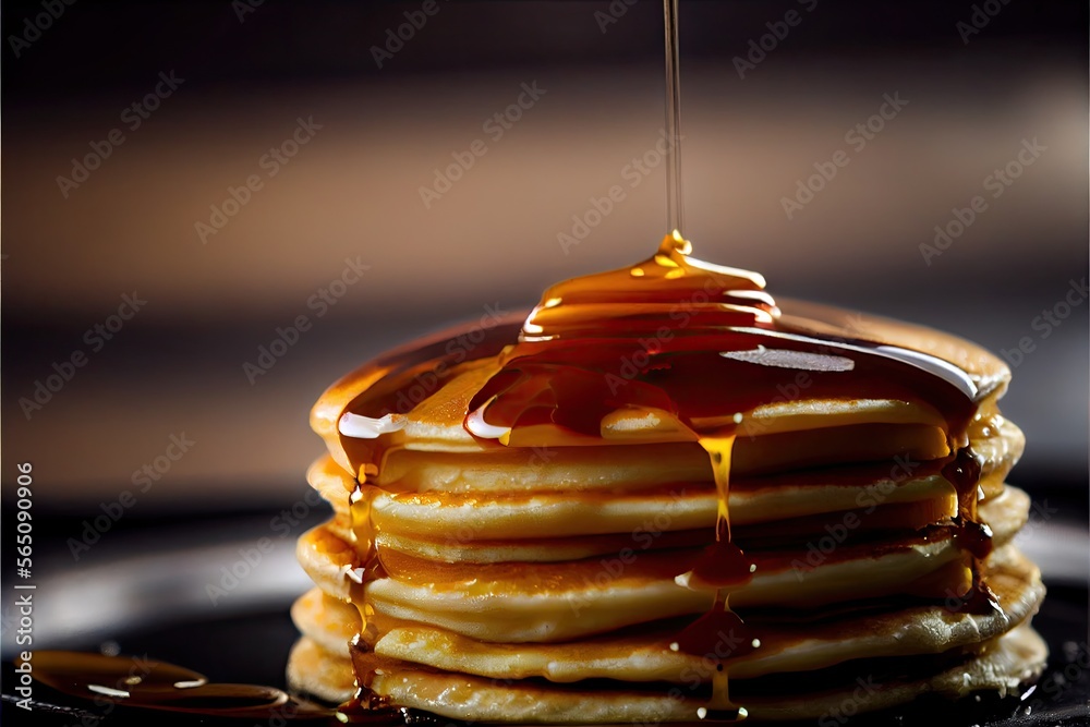 The watermark will not be included on Wall mural.: Stack of pancakes with butter and maple syrup - close up macro photography - generative ai